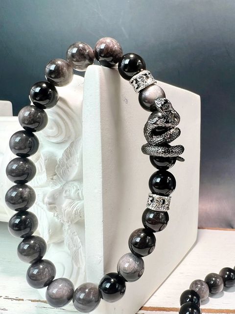 🐲 銀曜石貔貅手串|銀光守護,開啟財富與力量之門 🐲